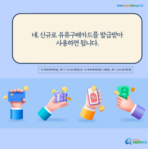 - 본인 명의로 경차 전용 유류세 환급 카드 발급